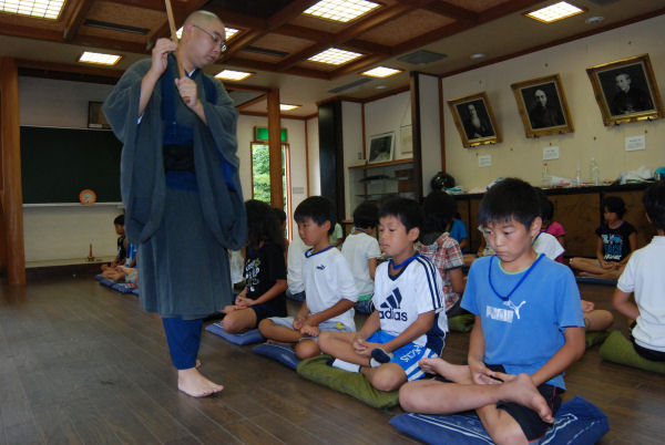 - 今日で5日目の最終日となる三聖塾では、座禅が行われました。普段は元気いっぱいの子どもたちもこの時ばかりは静かに姿勢を正していました。