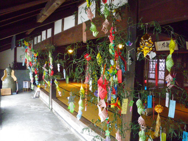 - 伊豆文邸では、旧暦の七夕に合わせて短冊が飾られています。