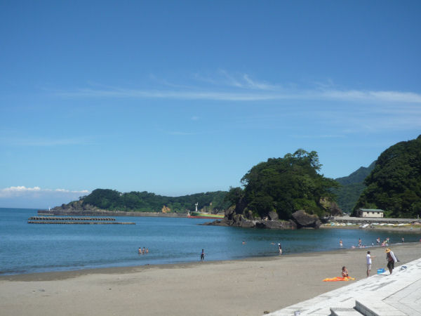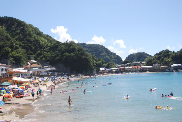 - 泳ぎたくなるような暑い日が続いています。 町内海岸では、海水浴を楽しむ方がちらほら見られます。 明日の防災訓練には、写真の岩地海岸をはじめ三浦地区で海上自衛隊多用途支援艦への海上輸送訓練が展開される予定です。
