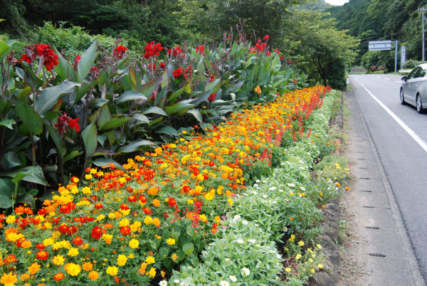 - 昨日開催された花壇コンクールにて、最優秀賞に輝いた小杉原花の親睦会が管理している県道下田松崎線沿いにある花壇です。