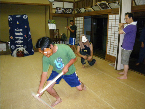 - 8月18日に上海万博で舞を披露する峰地区では、毎晩メンバーが公民館に集まり、練習が行われています。
