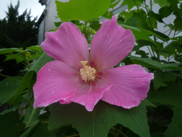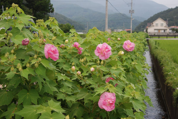 - 吉田地区でも酔芙蓉が咲き始めました。こちらは午前10時頃の写真です。