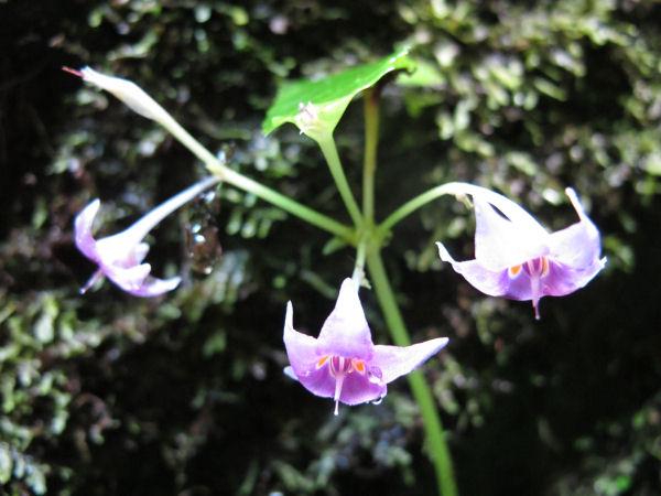 - 町内の湿った岩壁などでは、イワタバコの花が紫色の小さな花を咲かせています。