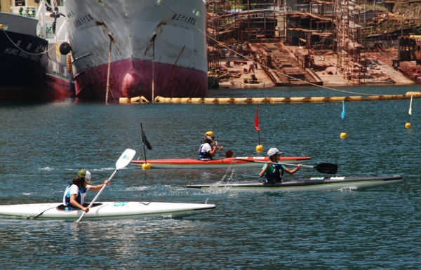 - 安良里漁港にて、第25回伊豆西海岸カヌー大会が開催され、参加した西伊豆、松崎町の小中学生は往復200メートルのコースでタイムを競いました。