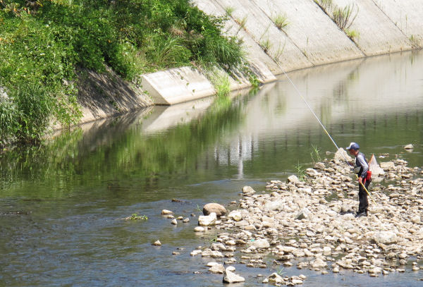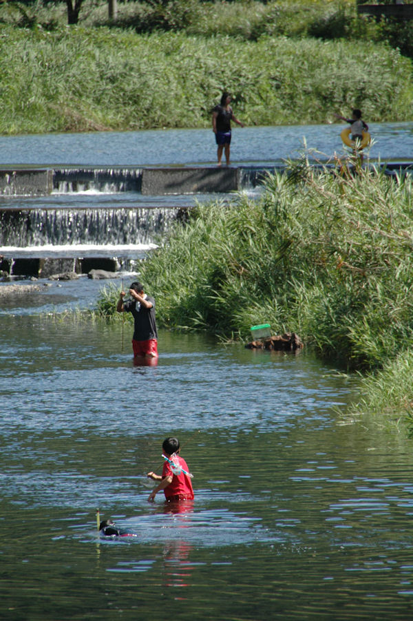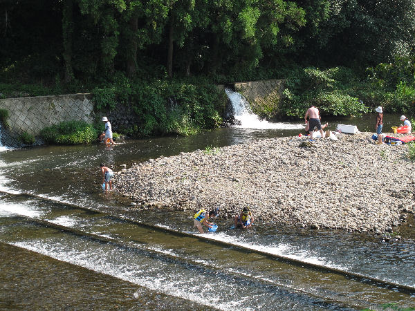 - 那賀川では、涼を求め川遊びに興じる家族連れが見られました。 川では、手長エビやズガニ、アユ、ヨシノボリなどが見つけられます。