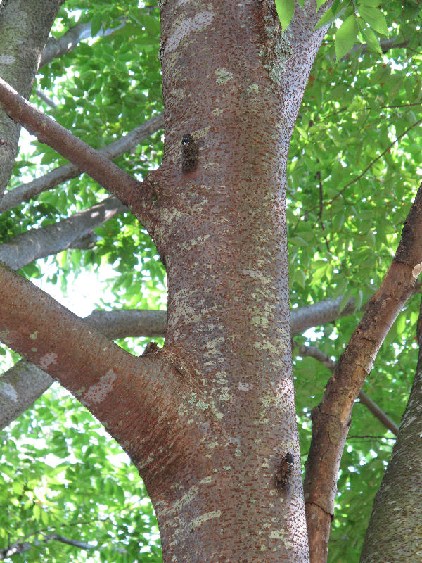 - 木陰に入って木々に目をやると、ジージーと鳴くアブラゼミがいくつも見つけられました。