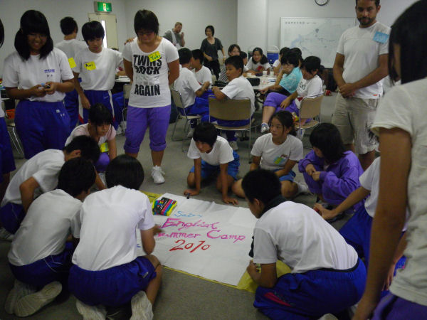 - 昨日から環境センターを会場にイングリッシュサマーキャンプが開催されました。参加した中高生は料理やゲームを通じ楽しみながら英会話を学びました。