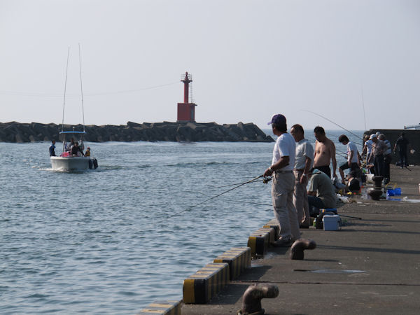 - 松崎港では、サビキやトリック仕掛けで釣りに興じる太公望がたくさん見られました。