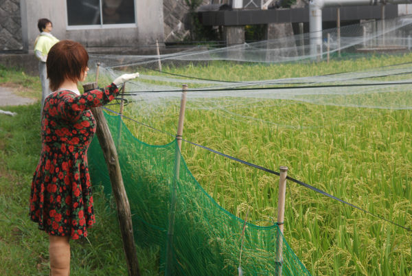 - 那賀耕地では、早稲の品種の稲穂が垂れ始めました。この稲を守るため、田んぼには人間そっくりの案山子が現れました。