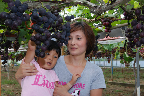 - 岩科地区にある八木山健康農園では、今日からぶどう狩り園がオープンしました。今日はオープンを記念して地元幼稚園児と保護者を招待しました。