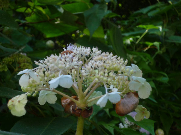 - 町内の山間部では、夏の終わりに咲くタマアジサイが咲き始めていました。