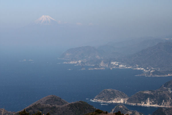 - 今日も風のない暖かな1日となりました。雲見の高通山からは、富士山の山裾が霞み浮き上がったように見えました。