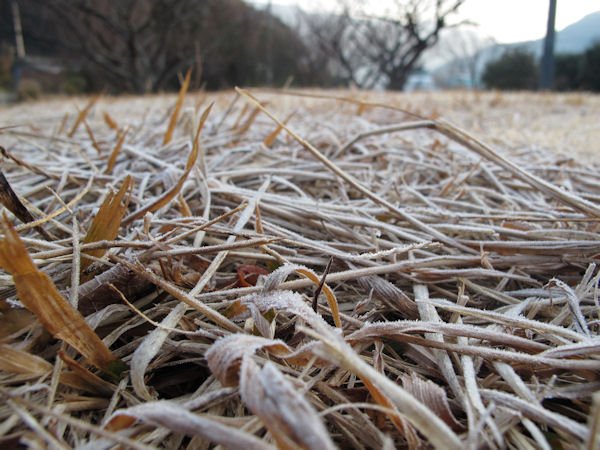 - 今朝は静かな朝となりました。 地面一面に真っ白く霜が降りました。 静かな一日となりそうなので、陽が昇り暖かくなりそうです。