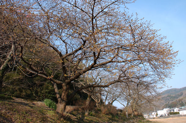 - 町内の早咲きの桜がつぼみをつけています。 写真は建久寺の桜ですが、蕾ばかりでなくすでにいくつかの花が開いていました。