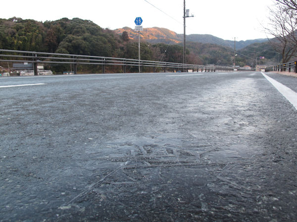 - 昨日の雪は収まりましたが、冷たい朝を迎えました。 日の出前は山間部ばかりでなく、平野部の道路も凍結するほどの冷たさでした。 温暖な松崎で道路が凍結するのは珍しいことです。