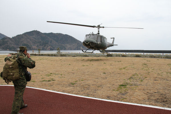 - 東海地震等大規模の災害発生を想定し、空からの救出や患者搬送ができるように自衛隊のヘリコプターによる救援訓練が行われました。