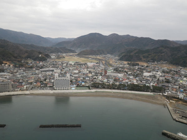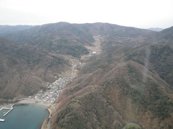 - こちらは、上空から見た松崎地区です。