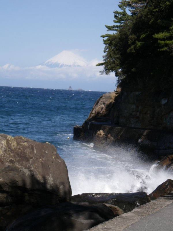 - 今日は昨日の雨も止み、天気が急速に回復しました。雲見海岸からは、雲の隙間から富士山を望むことができました。