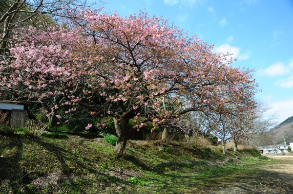 - 伏倉橋上流にある寒桜が咲き始めました。まだ1分咲きにも満たない程度ですが、これからの開花が楽しみです。