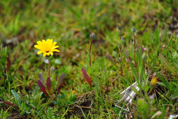 - 今日はとても暖かい1日となったため、那賀地区の田んぼをつかった花畑では、数輪ですが、アフリカキンセンカが開花しました。