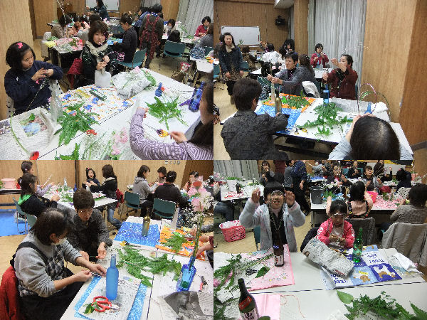 - 昨晩、生涯学習教室「生け花教室」の3回目の教室が開催されました。 参加者は、異質物(カラーワイヤー)の使用をテーマに、異質物と花の色のバランスを意識して生け花に取り組みました。