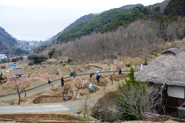 - 石部の棚田では、田植えの準備が始まっています。現在田おこしが行われ、この作業が終了すると水が張られアゼ切りなどの作業が行われます。