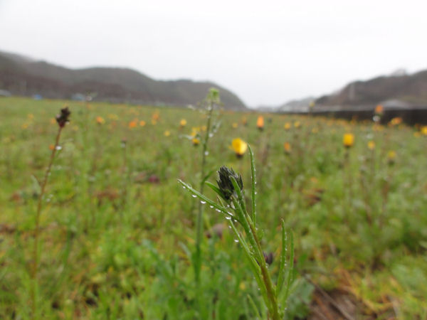 - 今日は太陽が見られなかったため、日光を好むアフリカキンセンカは花を閉じていました。しかし、土日の好天のためか花畑では、次に咲く姫金魚草のつぼみが目立ってきました。