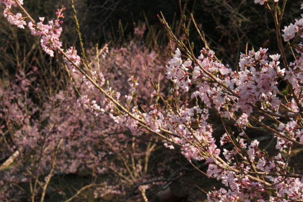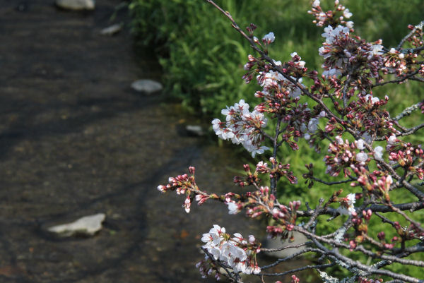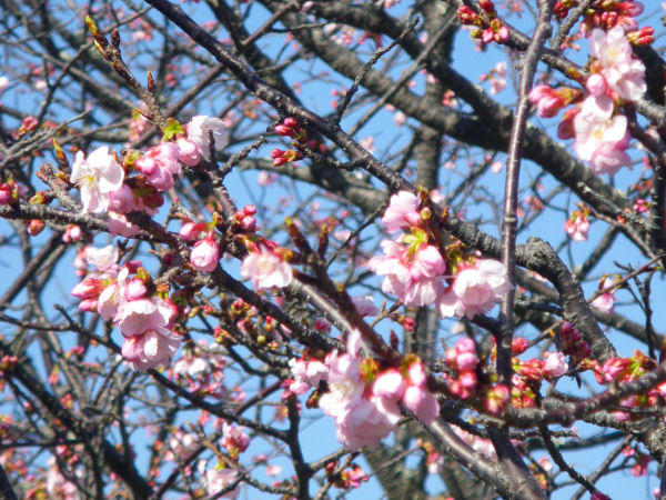 - 県道下田松崎線沿いの船田橋では、ソメイヨシノに近い色をした早咲きの桜が咲き始めました。