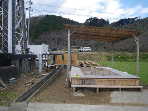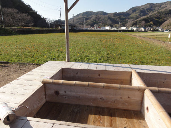 - 田んぼをつかった花畑では、今年も足湯を設置します。現在、組み立て作業が進められています。花畑が見ごろとなる頃にはオープンできそうです。