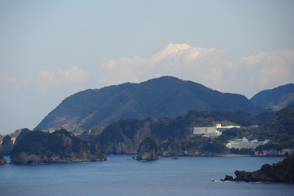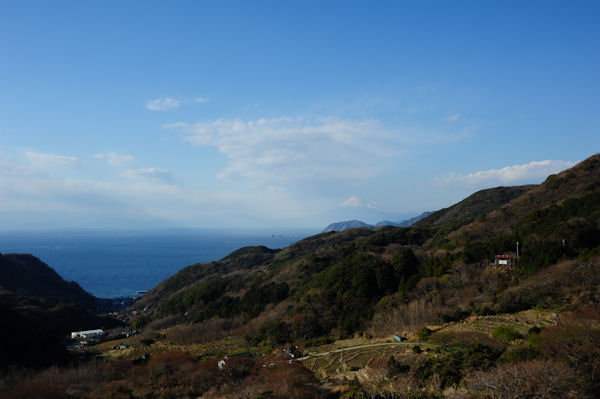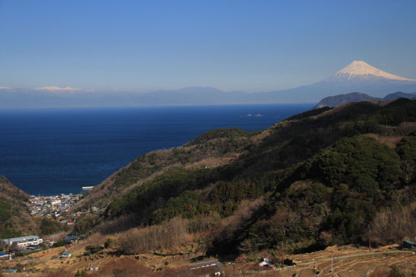 - 今日は、暖かい晴天の1日となりました。道部から雲見地区までの国道沿いでは、駿河湾越しにくっきりと富士山を望むことができました。