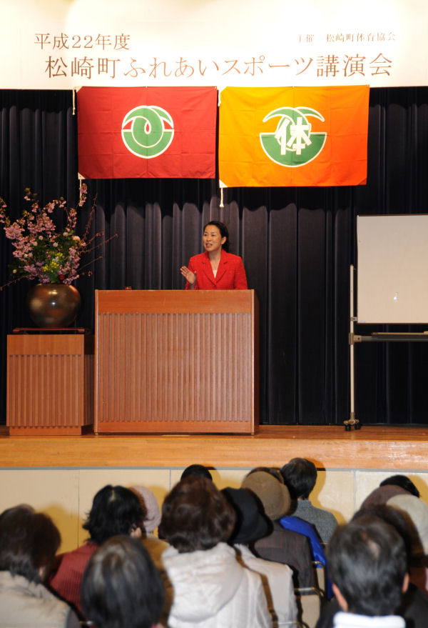 - 松崎町体育協会では、大阪府より岡本香代子氏を講師に招き、ふれあいスポーツ講演会が開催されました。 参加された皆さんは、元気に歩き続けるためのポイントを学び、講演会後半では、歩き方のトレーニングを体験しました。