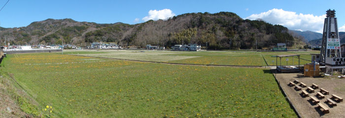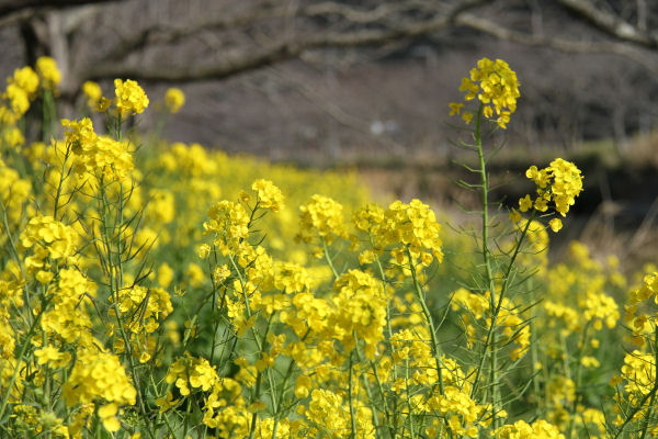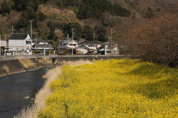- 峰輪から南郷までの県道15号と並行して流れる那賀川沿いでは、土手の菜の花が見ごろを迎え、黄色の花が一面に広がっています。
