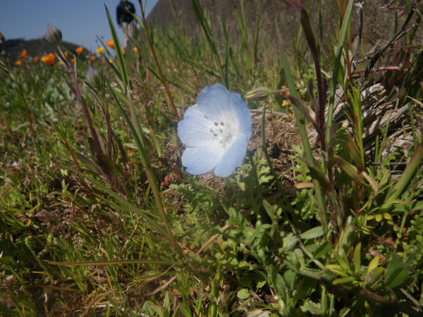 - 那賀花畑では、アフリカキンセンカのほかに、ヒメキンギョソウ、ルリカラクサが見えてきました。 足湯も好評です。