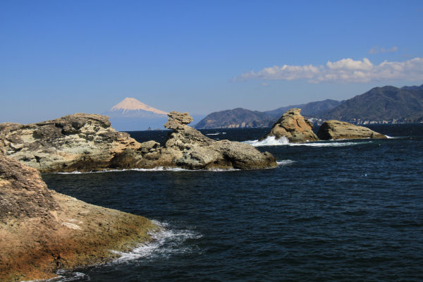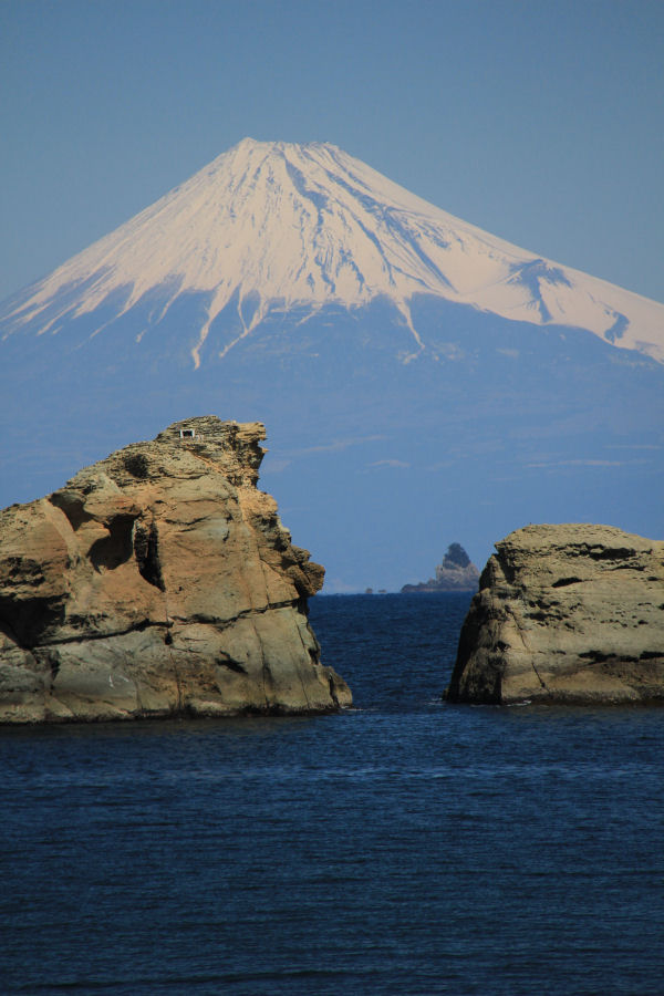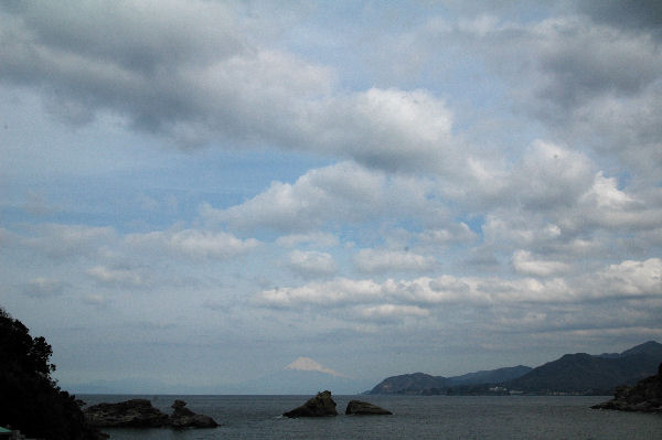 - 今日は、青空が広がり、海岸線からは駿河湾越しに富士山をきれいに望めました。特に雲見海岸からは、さまざまな形をした海岸線越しに富士山を望め、とてもきれいです。