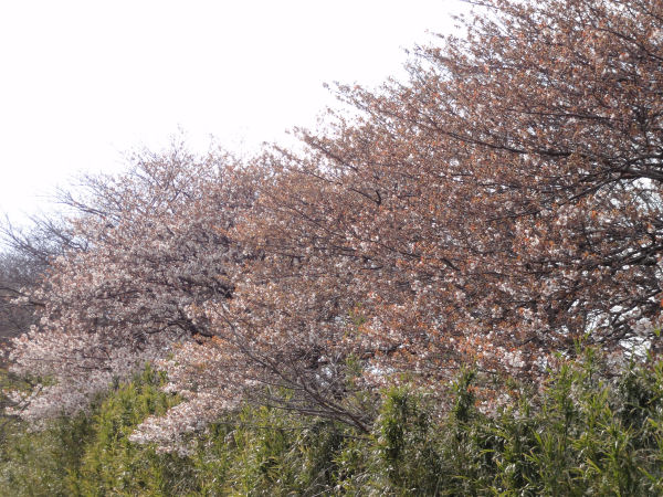 - 伏倉橋下流の土手では、ヤマザクラ系の品種の桜が1〜3分咲き程度になっています。