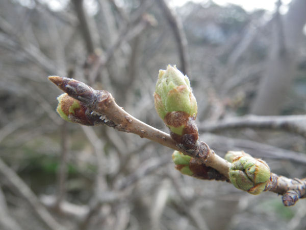 - 大澤の桜のつぼみです。 一部のつぼみで少しですが花弁のピンクが確認できるようになりました。