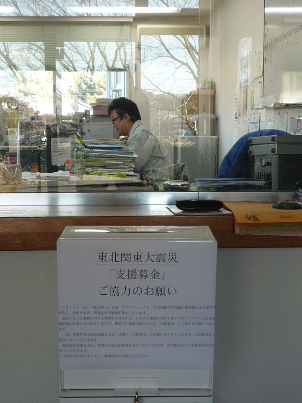 - 役場健康福祉課のカウンターにて、東北地方太平洋沖地震により被災された方々の支援のため、義援金の受付をしています。