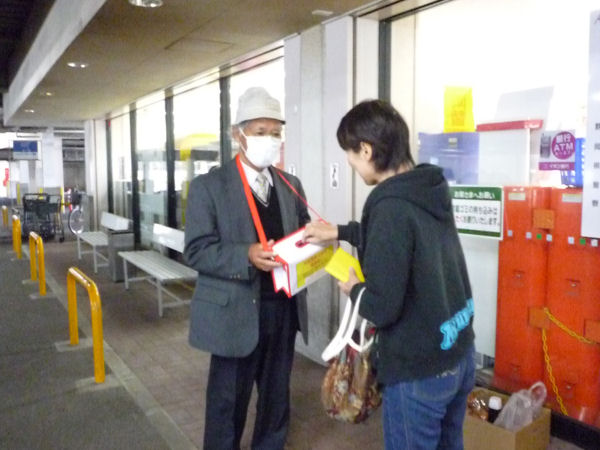 - 社会福祉協議会では、マックスバリュ駐車場にて東北地方太平洋沖地震への義援金の街頭募金をおこないました。お寄せいただいた義援金は中央共同募金会を通して、被災者の生活再建のために配分されます。