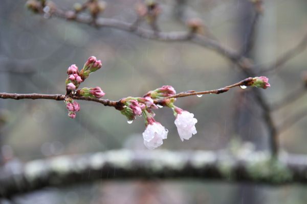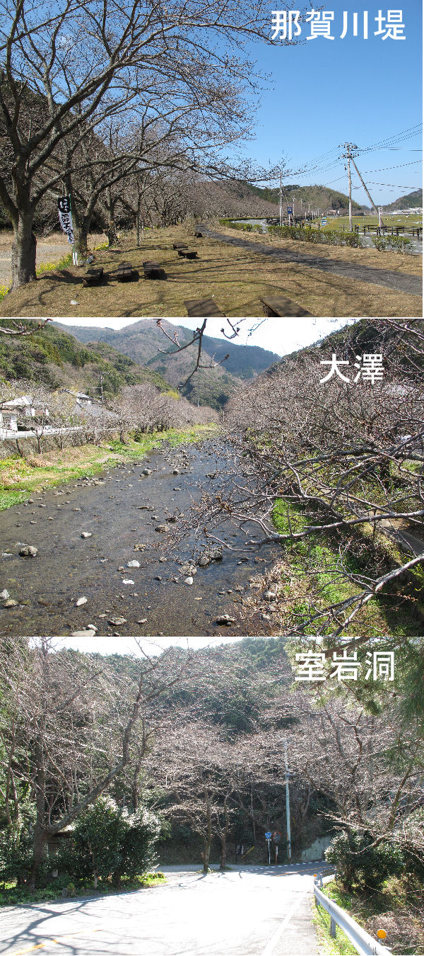 - ソメイヨシノも暖かい気候のため、開花が進み、大沢温泉と富士見彫刻ラインの室岩洞付近では、1分咲きとなりました。