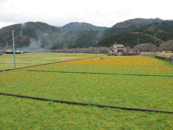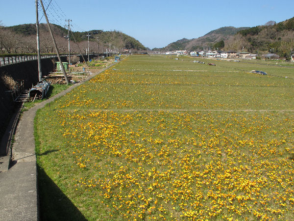 - 県道下田松崎線に沿うように流れる那賀川の土手では、菜の花が咲き揃ってきました。