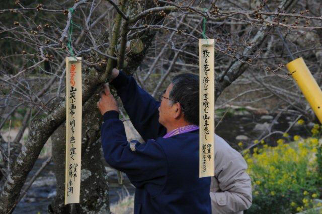 - 大沢温泉では、区民約30人が参加して第66回大沢桜祭句会で入賞した俳句が書かれた竹短冊500個を区内の桜の枝に吊るしました。