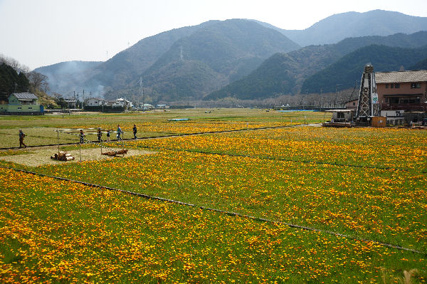 - 那賀畑では、アフリカキンセンカがきれいに広がっています。 温泉櫓の下では、売店も始まりました。