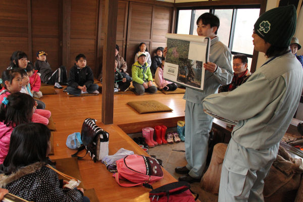 - 石部の棚田では、常葉大学の山田辰美教授を講師にお招きし、棚田とその周囲の森との関係や森と自分たちの生活の結び付きなどについて講義をしていただきました。