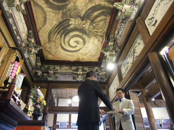- 浄感寺(長八記念館)において、3月18日に静岡県指定文化財に指定された本堂の天井画「雲龍図」(通称:八方にらみの龍)他の指定書伝達式が行われました。