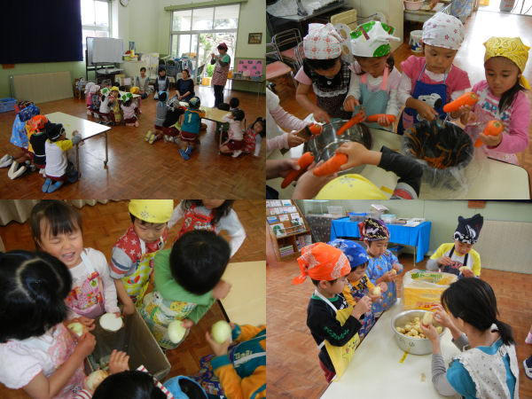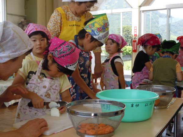 - 岩科幼稚園では、園児たちが育て、収穫したじゃがいもを使ってカレー作りを行いました。