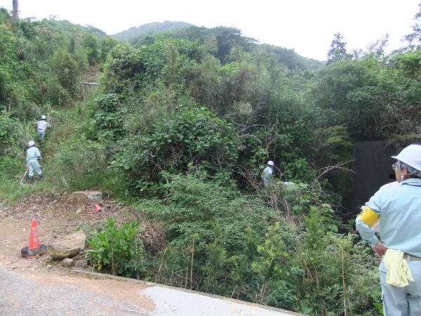 - 松崎町岩地地区では、夏の観光シーズンに備えて花壇や道路沿いを中心に草刈作業を行いました。