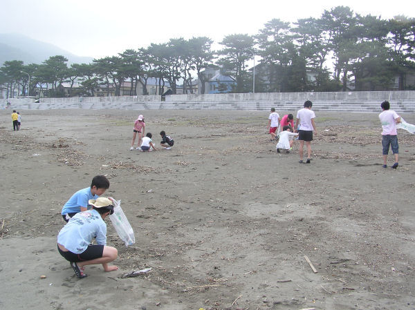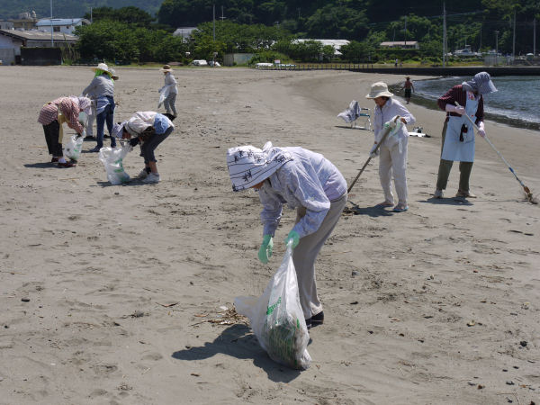 - また、日赤奉仕団(21名)の皆さんによる海岸清掃も行われ、夏の海水浴シーズン本番に備えました。