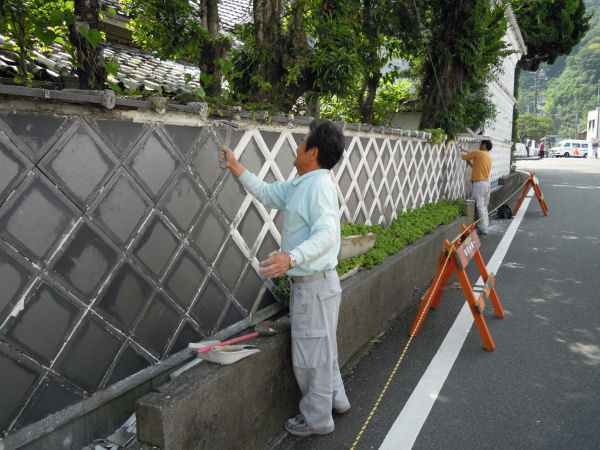 - 中瀬邸では、なまこ壁の補修作業が行われていました。
