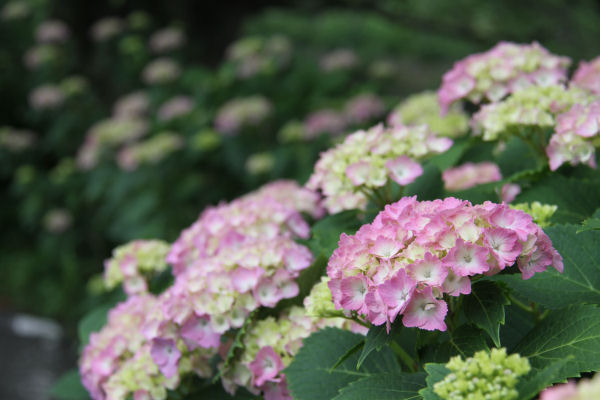 - 町内のアジサイが見ごろを迎えています。 雨模様の天気も相まって、アジサイは生き生きと華やかに咲いています。