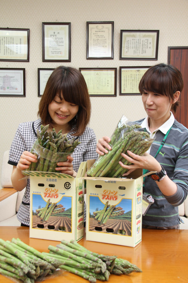 - 開拓姉妹都市の北海道帯広市からアスパラガスが贈られてきました。お贈りいただいたアスパラガスは、共同調理場に届けられ、子どもたちの給食としていただきます。